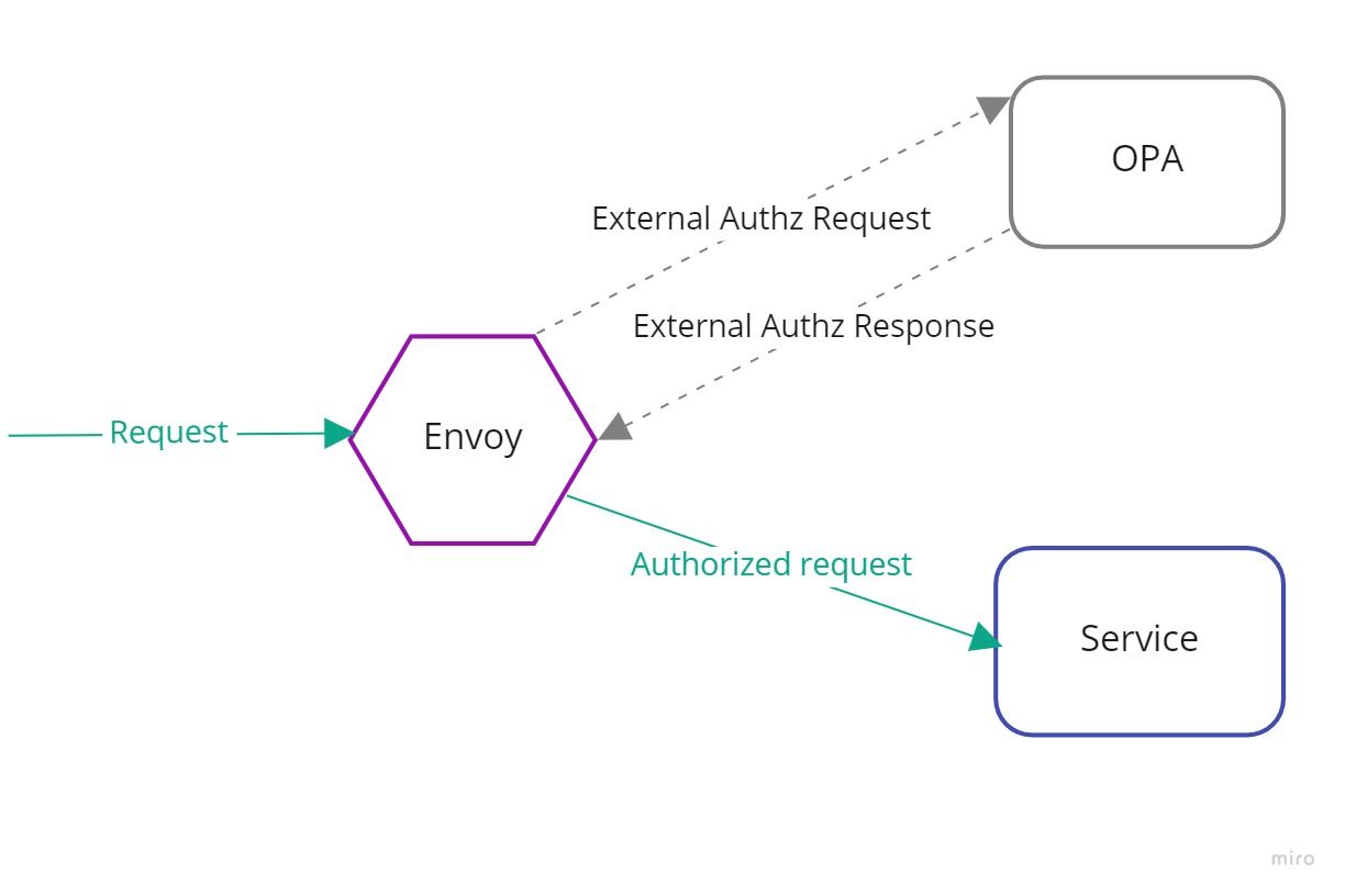Envoy supports an External Authorization filter which calls an authorization service to check if the incoming request is authorized or not. In this particular scenario, we use OPA as the authorization service which makes an informed decision about the fate of the incoming request received by Envoy.